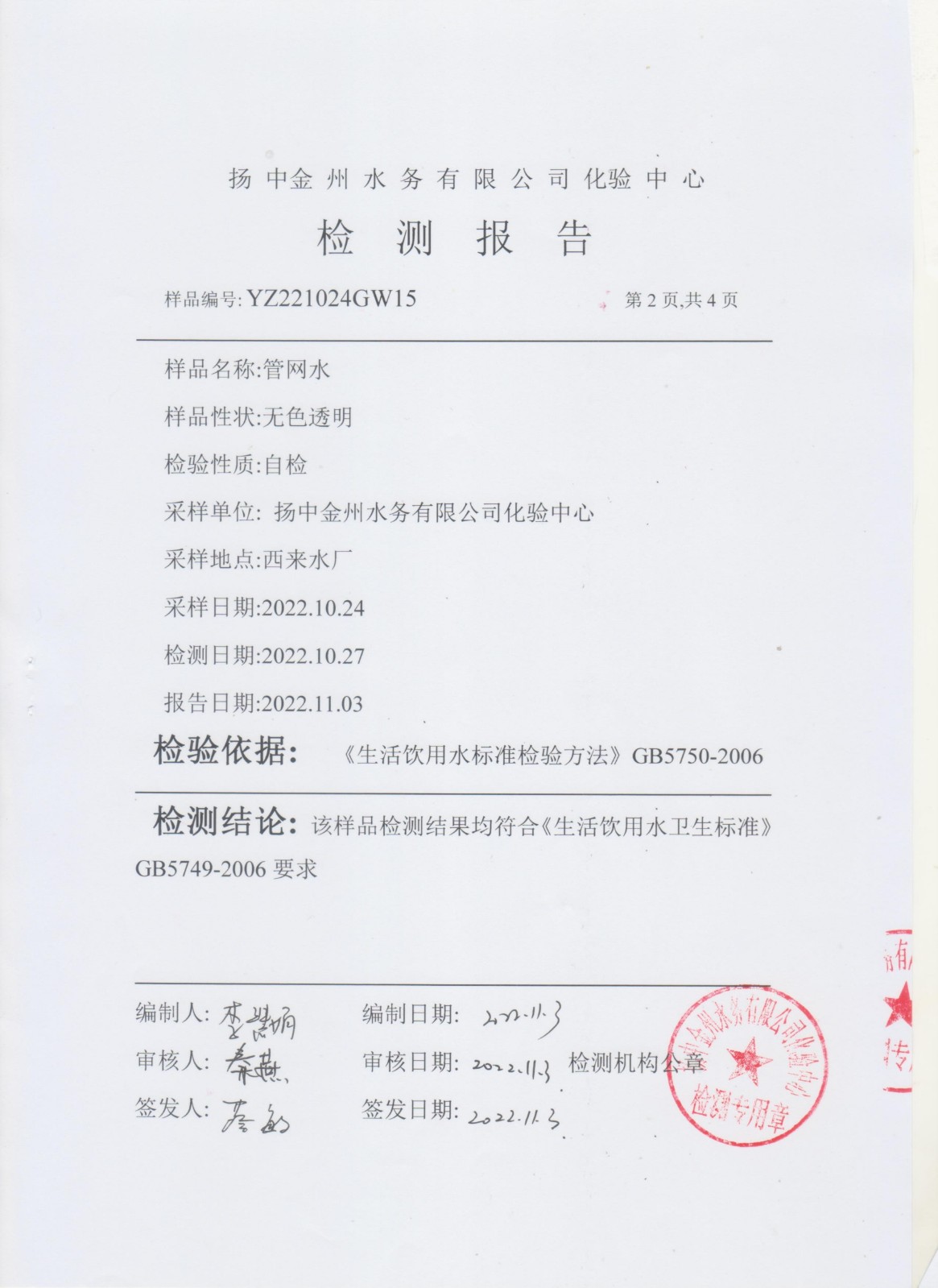 水質(zhì)公告